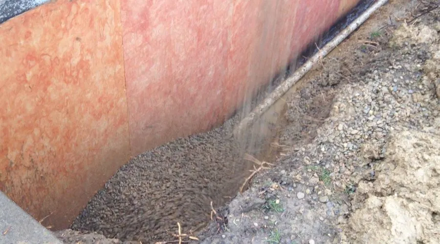 Eco-Seal started the job by excavating around the house, but after the first day the weather turned and it started to rain. The forecast didn’t look good. Despite the challenging conditions, Eco-Seal was committed to completing the job on-schedule. They installed power braces to mend the bowed walls and used a full gravel backfill to reduce future soil pressure on the foundation.