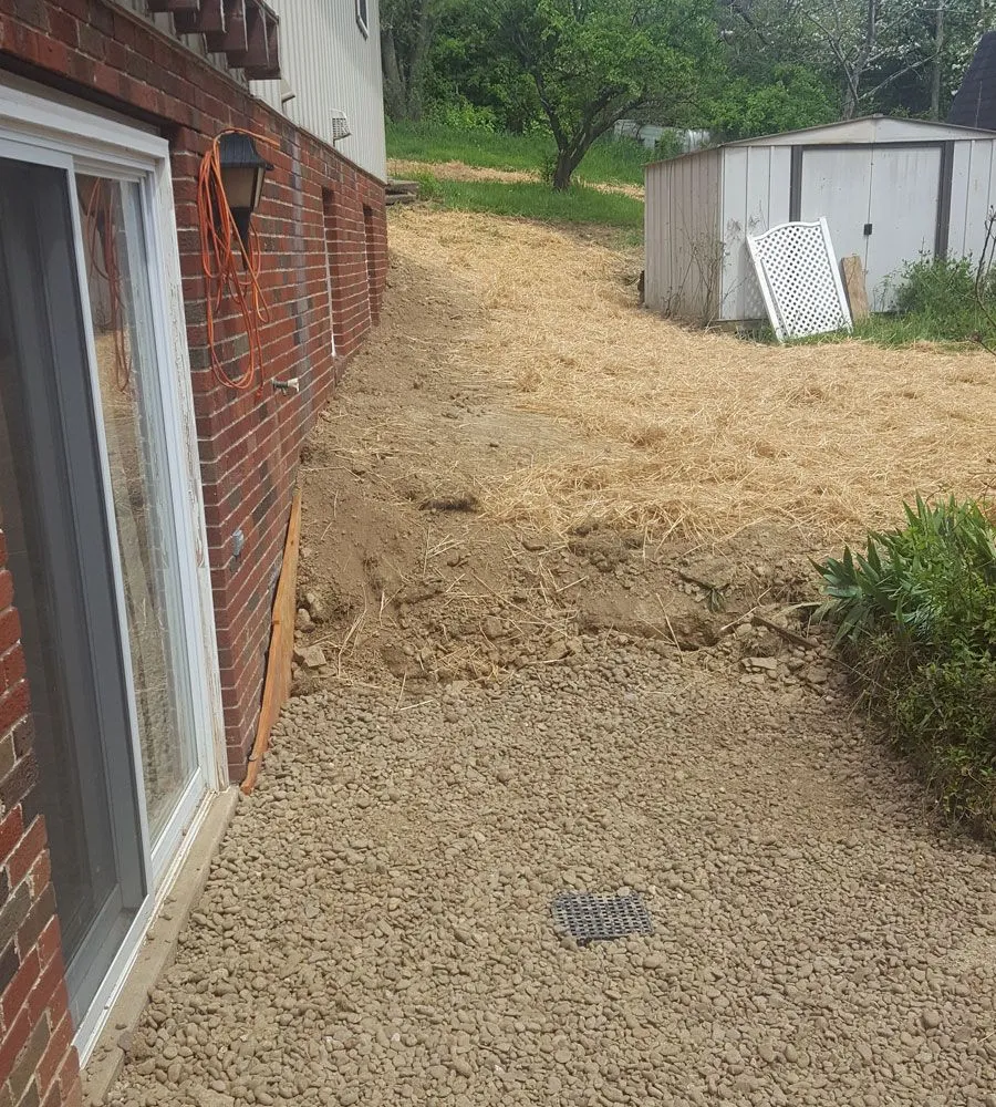 Thankfully, she got a hold of our team at Eco-Seal and we were on the scene pretty quickly to salvage the situation. We dug around the exterior of the house and waterproofed the basement walls. Then, we installed new footer drains and new downspout drains to draw water away from the house. Finally we regraded the ground and reseeded the grass to put the finishing touches on Sue’s lot and get everything looking back to normal.